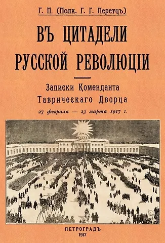 Репринт с издания. Петроград, 1917. Григорий Григорьевич Перетц (1870 - ?) Окончил курс Александровской юридической академии, произведен за отличные успехи в науках в штабс-капитаны (23.05.1901, Петергоф). На 1.01.1909 - 1912 подполковник, военный следователь военно-окружного суда Варшавского военного округа. Переведен в Казанский военно-окружной суд. Подал прошение об отставке (23.07.1913). Полковник в отставке. Журналист. Сотрудник газеты "Речь". В дни Февральской революции оказался в Таврическом дворце как сотрудник этой газеты. Назначен комендантом Таврического дворца (1.03-6.04 1917). Участвовал в целом ряде арестов, водворил в Министерский павильон Государственной думы личного друга Го