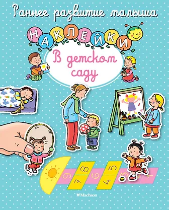 Открой книжку и узнай, что делают дети в детском саду! Побывай на детской площадке и на ферме, найди в наклейках и приклей всех детишек.