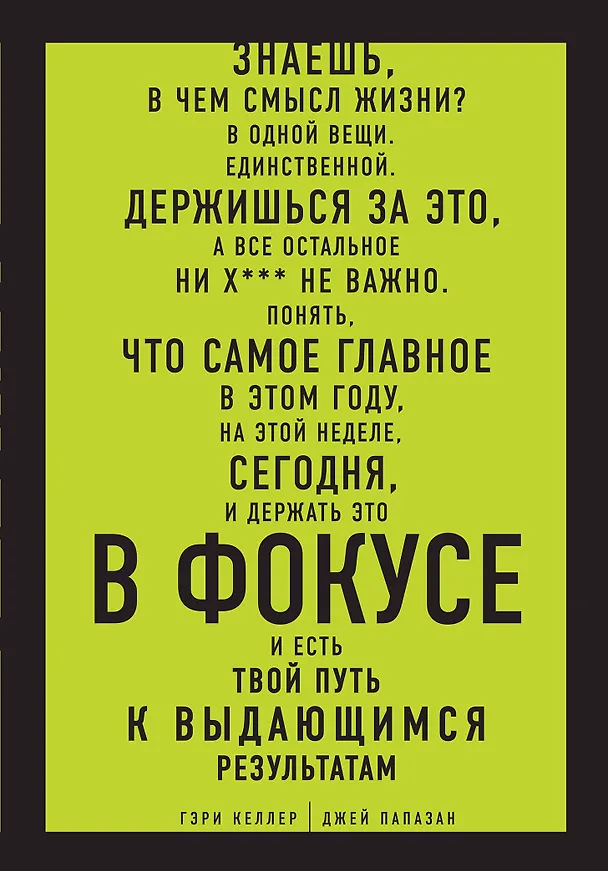 Теперь вы можете получить И ТО И ДРУГОЕ – МЕНЬШЕ И БОЛЬШЕ. Из книги "В ФОКУСЕ" вы узнаете, как перестать жонглировать миллионом задач; как достигать лучших результатов за меньшее время; как направить основные ресурсы на главную цель; как снизить уровень стресса; справиться с нахлынувшими эмоциями; восстановить силы; остаться на трассе; как довести до совершенства те навыки, которые помогут вам достичь экстраординарных результатов в каждом аспекте жизни – на работе, в семье, в личной и духовной сфере.