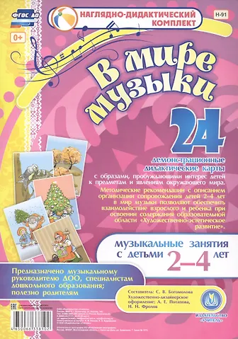 "В мире музыки". Наглядно-дидактический комплект для детей 2-4 лет. Содержит 24 демонстрационные дидактические карты. Предназначено музыкальному руководителю ДОО, специалистам дошкольного образования, полезно родителям.