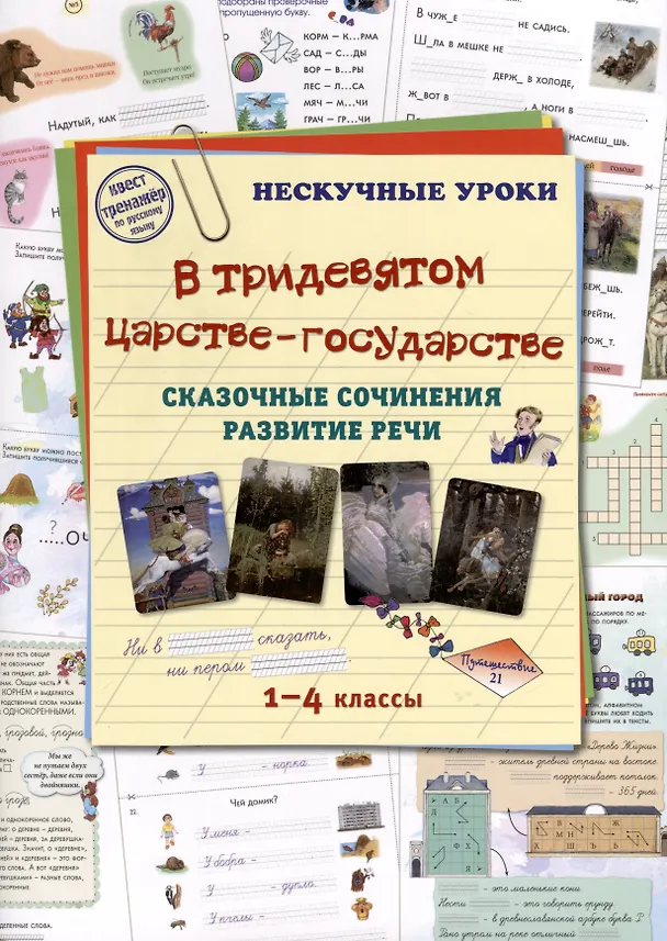 Целых 60 творческих заданий содержат в себе тетради «В тридевятом царстве-государстве»! Они познакомят учеников с законами построения сказки. Ребята вспомнят, а то и сочинят сами зачины, присказки и концовки сказок. А могут и сами попробовать написать сказку! Все задания разделены на 21 сказочное путешествие, каждое из которых можно использовать как для индивидуальной работы, так и для командной. Нескучные уроки» — серия книг-пособий, призванная разнообразить уроки в школе, наполнить их метапредметным содержанием.
