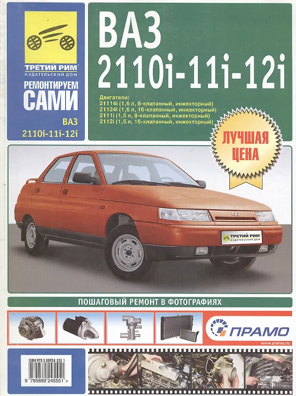 Предлагаем вашему вниманию руководство по ремонту и эксплуатации автомобиля ВАЗ-2110i, -11i,- 12i В книге рассмотрены модификации автомобилей с двигателями 2111i (1.5 л, 8-клапанный, инжекторный), 2112i (1.5 л, 16-клапанный, инжекторный), 21114i (1.6 л, 8-клапанный, инжекторный), 21124i (1.6 л, 16-клапанный, инжекторный).