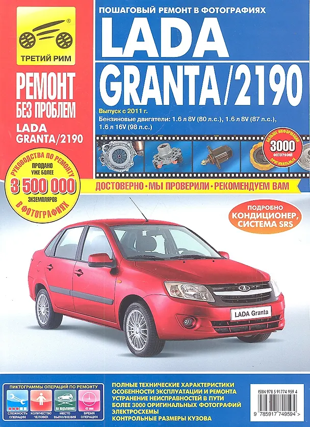 Lada Granta / 2190: Руководство по эксплуатации, техническому обслуживанию и ремонту. Выпуск с 2011 г. Бензиновые двигатели: 1,6 л 8V (80 л.с.) 1,6 л 8V (87 л.с.) 1,6 л 16V (98 л.с.) в фотографиях