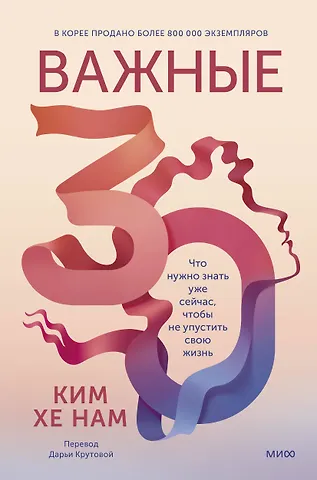 Было интересно, будет ли комфортно, познавательно и увлекательно для российского читателя книга корейского психолога. Что ж, могу смело заявить, что как минимум мне комфортно, абсолютно комфортно, как максимум - остальным тоже будет интересно прочитать данное произведение, т.к. автор пишет действительно интересно и приводит примеры из литературы и кинематографа, не только своей страны, но и ссылается на иные, и скорее всего общеизвестные, примеры. Я бы рекомендовала читать эту книгу ещё в 20-25 лет, чтобы к "важным 30" прийти без проблем, депрессий и сожалений. Прошу обратить внимание, что данная книга, как и большинство представителей психологической литературы, не прямое руководство к действию, но достойный представитель, который поможет обнажить проблемы, при чем достаточно обыденным и простым языком с примерами, а также направит вас в правильном направлении и заставит задуматься о том, что же можно изменить в своей жизни, чтобы повысить её качество и быть счастливым, в такой не спокойный период взрослой жизни