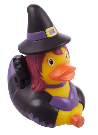 Резиновая уточка «Ведьма» — креативная вариация классической игрушки для купания с тематическим дизайном. Сочетает безопасность и функциональность стандартной уточки с оригинальным оформлением в стиле хэллоуинской ведьмы. Подходит для игр в воде, коллекционирования и в качестве необычного сувенира. При нажатии издаёт мягкий пищащий звук.