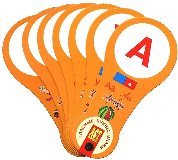 С помощью этого пособия в игровой форме ребенку легко объяснить основные понятия. Веер знакомит ребенка с гласными буквами и знаками. Пособие рассчитано на детей 4-8 лет и состоит из 7 карточек, скрепленных между собой. Форма веера специально разработана с учетом эргономики детской руки, что делает работу ребенка с этим пособием особенно комфортной. Необычные игровые приемы (например, отверстия на картах) дают ребенку возможность воспринимать новую информацию не только зрительно, но и тактильно, что во много раз повышает эффективность занятий. Пособие рекомендуется использовать для индивидуальных занятий родителей с детьми, а также на занятиях в подготовительной группе детского сада и в нача