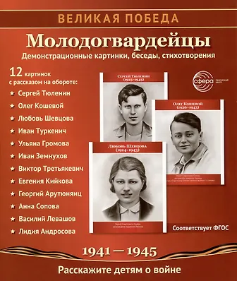 Великая Победа. Молодогвардейцы. 12 демонстрационных картинок с текстом на обороте