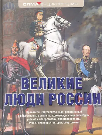 .Том «Великие люди России» расскажет о самых выдающихся представителях нашего народа, о тех, кто в буквальном смысле слова творил его историю, создавал науку и культуру. Эти люди принадлежат к разным эпохам, по-разному складывались их судьбы. Но всех их объединяет одно: всепоглощающая увлечённость своим делом, работой на благо Родины. И с каждого из них почётно брать пример.