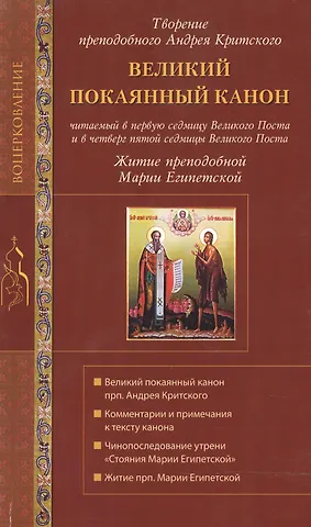 Творение преподобного Андрея Критского, читаемый в понедельник, вторник, среду, четверг первой седмицы и в четверг пятой седмицы Великого Поста (с приложением Жития преподобной Марии Египетской).