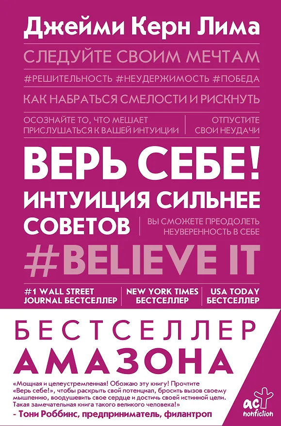 В книге «Верь себе!» вы познакомитесь с судьбой женщины, которая смогла основать компанию IT Cosmetics в своей гостиной, превратить ее в крупнейший бренд элитной косметики в стране и продать его марке L'Oréal за миллиард долларов. Автор делится своими личными и профессиональными уроками, которые она извлекла из некоторых действительно