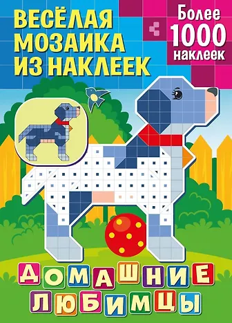 "Весёлая мозаика из наклеек" - серия занимательных книг, направленных на развитие мелкой моторики у детей. Милые картинки с животными, игрушками, машинками и другими предметами разделены на квадраты и треугольники. Нужно найти на листе наклеек фигуру нужного цвета и приклеить на место.