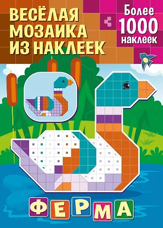 "Весёлая мозаика из наклеек" - серия занимательных книг, направленных на развитие мелкой моторики у детей. Милые картинки с животными, игрушками, машинками и другими предметами разделены на квадраты и треугольники. Нужно найти на листе наклеек фигуру нужного цвета и приклеить на место.