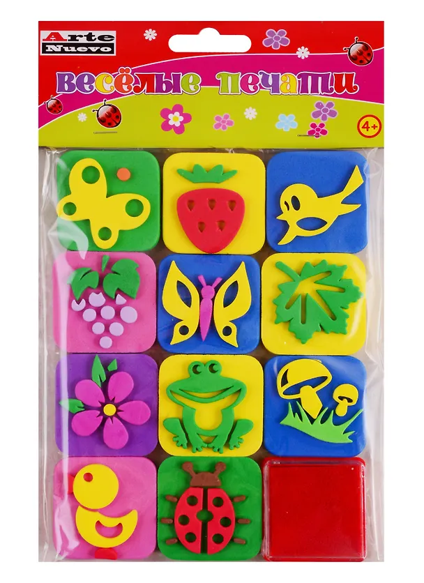 Веселые красочные мягкие печати станут любимым развлечением вашего малыша. В наборе: 11 печатей из EVA, подушечка с чернилами на водной основе. Для детей от 4 лет.