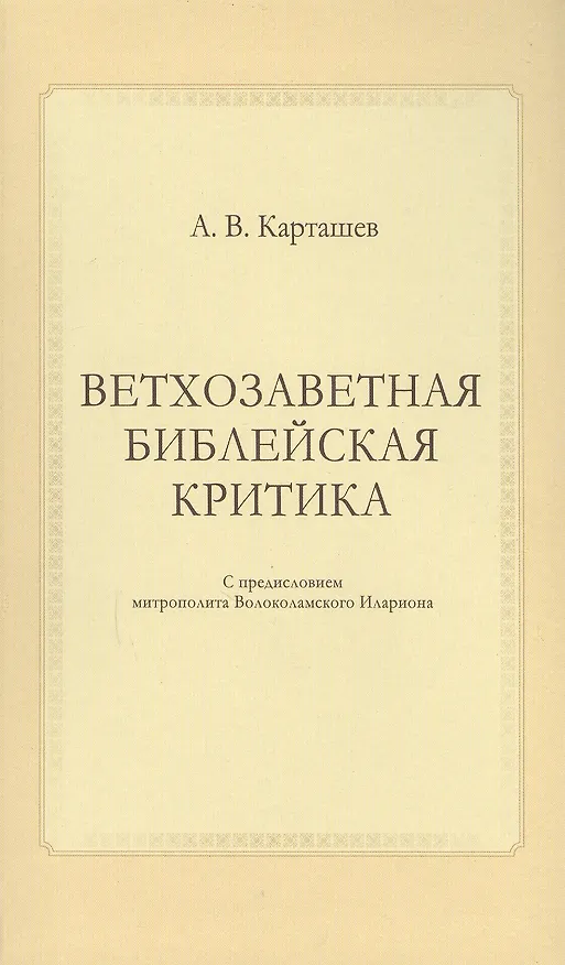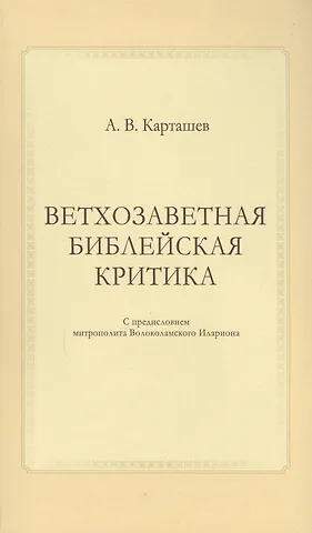 Книга А.В. Карташёва "Ветхозаветная библейская критика" представляет собой переиздание знаменитого доклада, который был прочитан автором 13 февраля 1944 года в парижском Свято-Сергиевском богословском институте. В связи с трудностями военного и послевоенного времени доклад Карташёва был опубликован лишь в 1947 г. - в издательстве YMCA-PRESS в Париже, небольшим тиражом. Это издание давно уже стало библиографической редкостью. Полного переиздания доклада Карташёва не было.