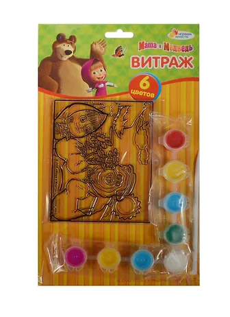 Витраж Маша и медведь (T13-SC-MM1) (177494) (краски и кисть) (Играем вместе) (упаковка)