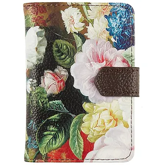 Визитница на 1 окно с магнитным клапаном. Снаружи - люксовая искусственная кожа с цветочным принтом, внутри - пластиковые кармашки для 24 визитных карточек.