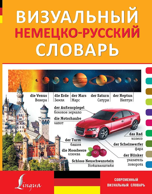 Визуальный немецко-русский словарь содержит свыше 3500 иллюстраций и около 6500 слов и выражений.
