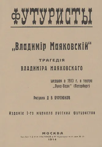 Владiмир Маяковскiй: Трагедия. Репринтное издание книги 1914 года