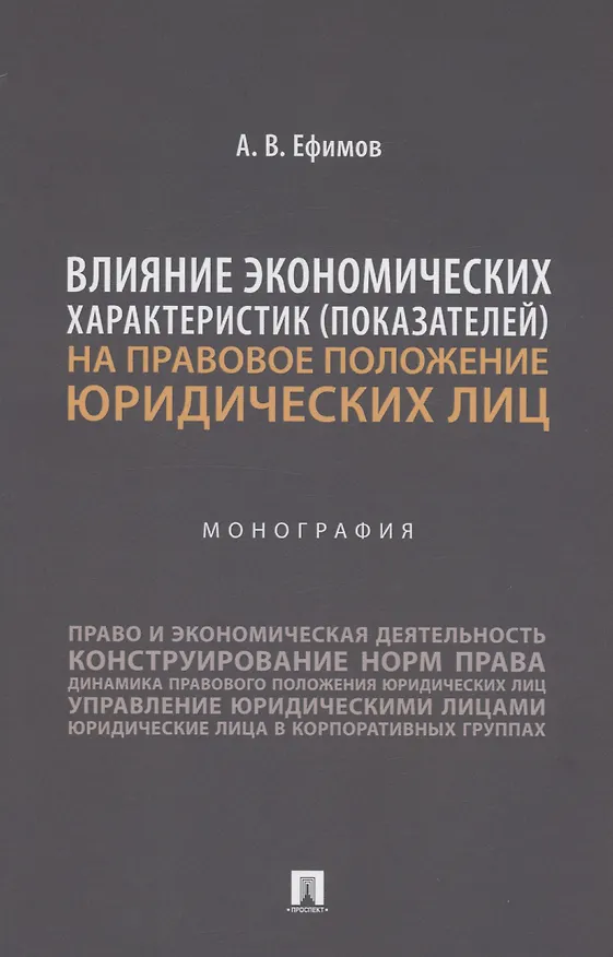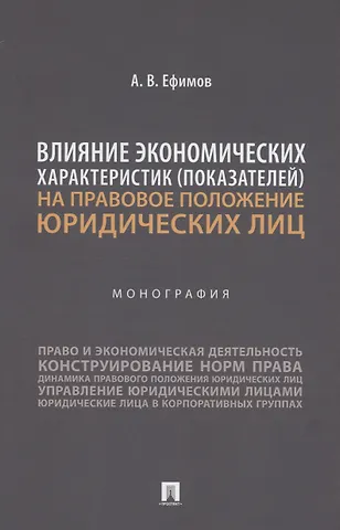 Монография посвящена исследованию связи экономических характеристик (показателей) и правового положения юридических лиц. На основе теории корпоративного права доказывается, что правовое положение юридических лиц зависит от динамики их экономических характеристик (показателей), возникающих при осуществлении экономической деятельности. Подчеркивается центральная идея, что правовое регулирование экономической деятельности должно ориентироваться на учет экономических характеристик (показателей), которые могут быть свойственны юридическим лицам. Нормативные правовые акты и судебная практика приведены по состоянию на 1 июля 2023 г. Книга предназначена для научных и практических работников. Может б