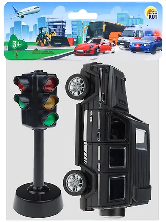 Внедорожник в наборе со светофором порадует ребенка детальным исполнением и ярким дизайном. Машинки – незаменимые игрушки в сюжетных играх, так что с их помощью ваш ребенок может развивать воображение – в них можно катать маленьких игрушечных персонажей, возить разный груз, проигрывать различные ситуации. Машинки прекрасно помогают развитию пространственного мышления, координации движений и мелкой моторики. Ваш ребенок будет счастлив и увлечен, играя с игрушечным автомобилем! Рекомендовано детям от 3-х лет. Размер: 16,5х5х21 см. Особенности: открывающиеся двери.