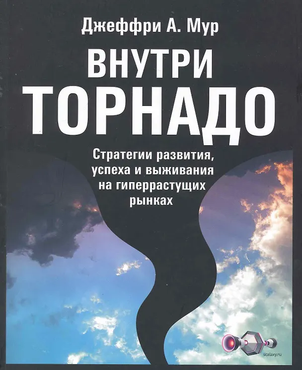 В книге "Внутри торнадо. Стратегии развития, успеха и выживания на гиперрастущих рынках" Джеффри Мур продолжает свою классическую трилогию и исследует рынки в период сверхроста и их влияние на стратегии бизнеса, а затем даёт эффективные рекомендации о том, как завоевать долю рынка и добиться роста прибыльности на массовых рынках. Автор объясняет, как можно капитализировать потенциал периода сверхроста, и демонстрирует, как рыночные силы, стоящие за жизненным циклом внедрения продукта, приводят к радикальным сдвигам в рыночной стратегии.