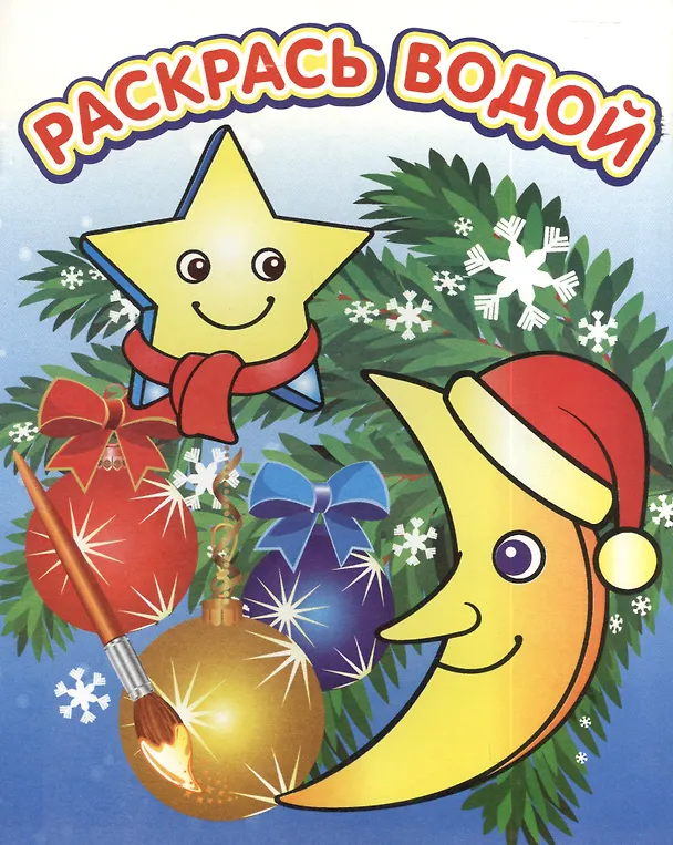 Водная раскраска в сказках Новогодние игрушки 8 страниц 8 иллюстраций