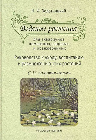 Знаменитая книга Н.Ф. Золотницкого, впервые опубликованная в 1887 году, сразу стала бестселлером. Переизданная сегодня, через сто с лишним лет, она не потеряла своей актуальности. Книга, как и прежде, поможет тем, кто только начитает заниматься водяными растениями, и тем, для кого они - давнее и серьезное увлечение.