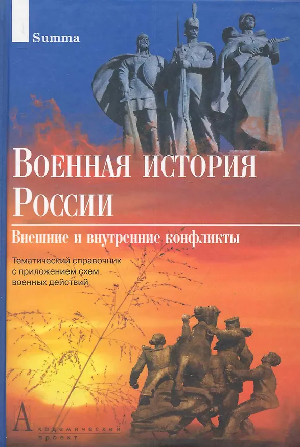 Предлагаемый вниманию читателей тематический справочник посвящен военной истории России IX — начала XXI в., представленной в виде описания войн и вооруженных конфликтов, в которых участвовало российское государство, в том числе и внутренних, что отличает настоящее издание от большинства аналогичных книг справочно-энциклопедического характера. Впервые реализована попытка комплексной систематизации военно-исторических событий, для которых хронология является естественным, но не единственным основным системным признаком. Материал справочника распределен по четырем разделам, соответствующим наиболее общим историческим этапам становления и развития российской государственности, причем структура с