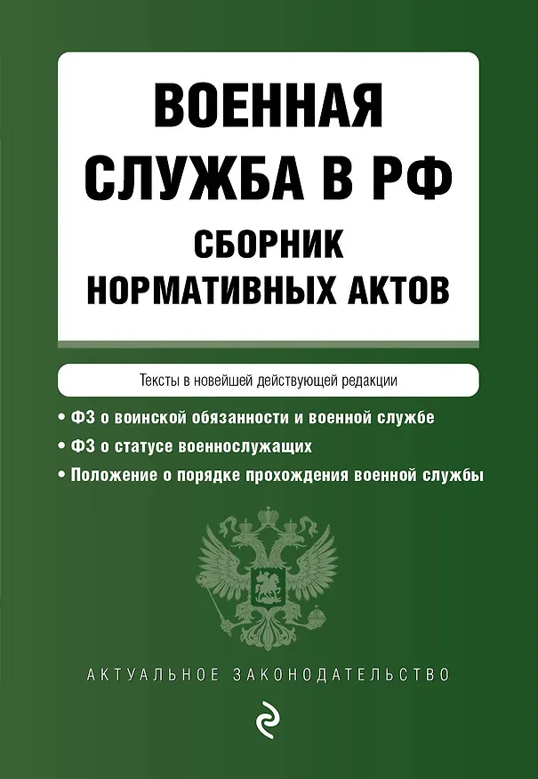 Впервые - в одном сборнике все тексты основных нормативных правовых актов, регулирующих вопросы военной службы в Российской Федерации в новейшей действущей редакции на 2024 год (с учетом поправок о добровольческих формированиях). В сборник включены тексты федеральных законов от 28.03.1998 № 53-ФЗ "О воинской обязанности и военной службе" и от 27.05.1998 № 76-ФЗ "О статусе военнослужащих", Положения о порядке прохождения военной службы, утвержденного Указом Президента РФ от 16.09.1999 № 1237.