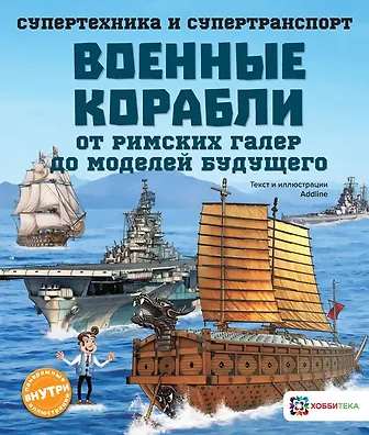 Из книг серии "Супертехника и супертранспорт" - с потрясающими разворачивающимися иллюстрациями и интересным познавательным текстом - ты узнаешь много нового о самых современных, мощных, быстрых и полезных машинах, а также сможешь рассмотреть их в деталях на огромных реалистичных картинках. В книге "Военные корабли. От римских галер до моделей будущего" мы отправимся в путешествие по волнам истории военного флота! С римской галеры пересядем на первый бронированный фрегат, не раз пересечём Атлантику на лёгких крейсерах и быстрых субмаринах, увидим, как взлетают самолёты с палубы авианосца и наконец познакомимся с уникальной морской техникой наших дней.