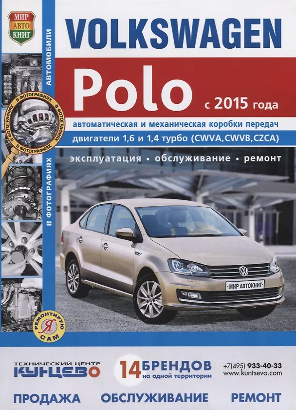 Иллюстрированное руководство содержит подробную информацию по вопросам повседневной эксплуатации, регулярного технического обслуживания и текущего ремонта автомобилей Volkswagen Polo выпуска 2015 года с двигателями 1,6 и 1,4 турбо (CWVA, CWVB, CZCA).