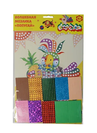 Мозаику с изображением попугайчика приобрели в одном из магазинов сети для ребенка четырех лет по привлекательной акционной цене. Сын сам выбрал ее. Мозаика очень понравилась ребенку: легкая в исполнении, но при этом быстро не наскучивает. Особенно оценили наличие блестящих элементов различной формы и разных цветов. Все элементы легко отделяются от основы и крепко держатся на картоне. Рекомендую к покупке!
