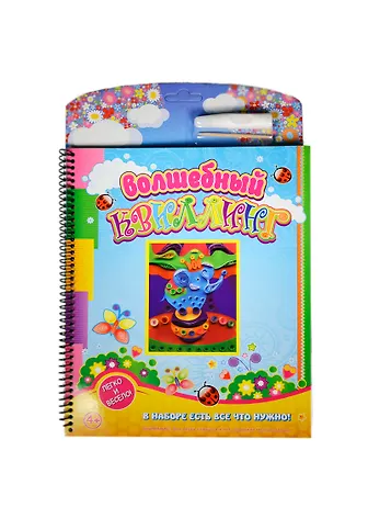 Волшебный квиллинг - набор для детского творчества, Книга-набор: книга на картоне, пружина, с описанием работы плюс детали для изготовления поделки: бумага, клей, деревянная палочка, рамочка из вспененного материала (EVA). Размер изготовленной картины 23 х35 см.