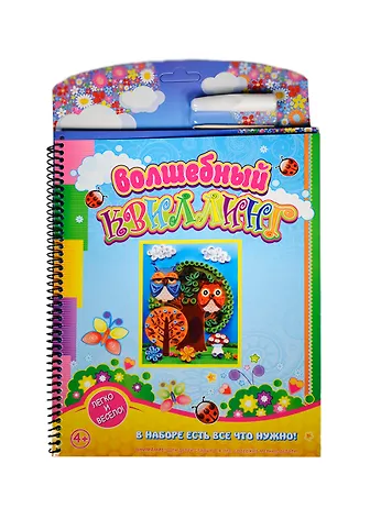 Волшебный квиллинг - набор для детского творчества, Книга-набор: книга на картоне, пружина, с описанием работы плюс детали для изготовления поделки: бумага, клей, деревянная палочка, рамочка из вспененного материала (EVA). Размер изготовленной картины 23 х35 см.