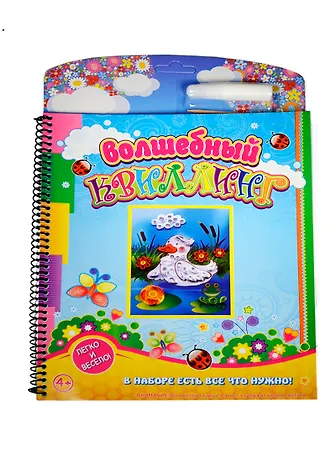 Волшебный квиллинг - набор для детского творчества, Книга-набор: книга на картоне, пружина, с описанием работы плюс детали для изготовления поделки: бумага, клей, деревянная палочка, рамочка из вспененного материала (EVA). Размер изготовленной картины 23 х35 см.