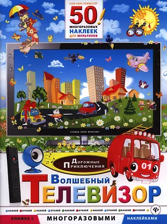 .Эта необыкновенная книжка открывает для тебя заветную дверцу в страну Мультляндию. Ты можешь создать чудесные мультики, разместив забавных персонажей на фоновых картинах экрана Волшебного телевизора.
