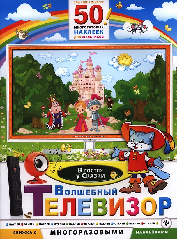 .Эта необыкновенная книжка открывает для тебя заветную дверцу в страну Мультляндию. Ты можешь создать чудесные мультики, разместив забавных персонажей на фоновых картинах экрана Волшебного телевизора.