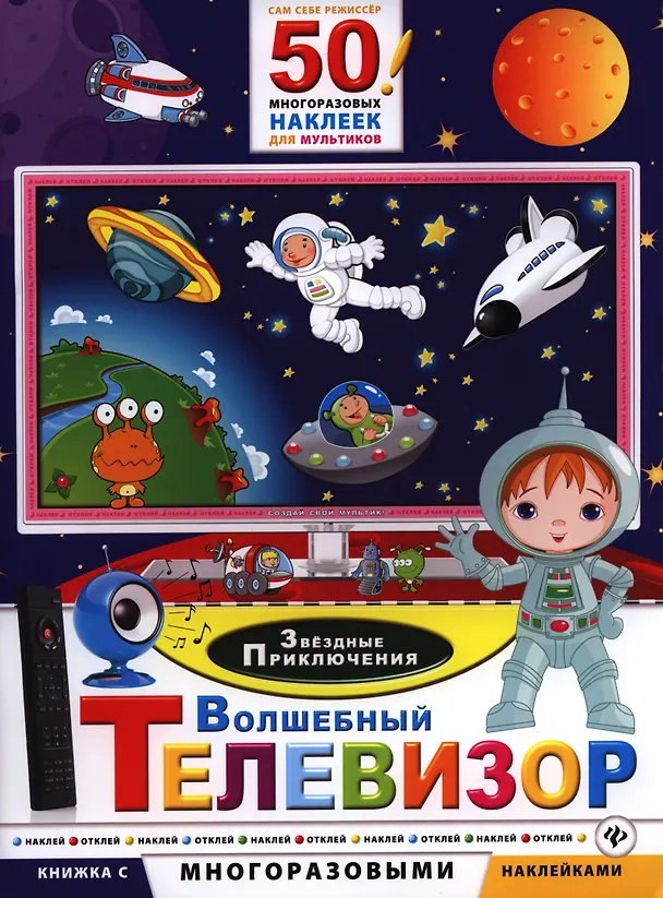 .Эта необыкновенная книжка открывает для тебя заветную дверцу в страну Мультляндию. Ты можешь создать чудесные мультики, разместив забавных персонажей на фоновых картинах экрана Волшебного телевизора.