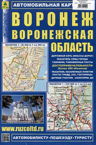 Вашему вниманию предлагается Автомобильная карта Воронеж. Воронежская область. Масштаб (1/36тыс) (1/530тыс)