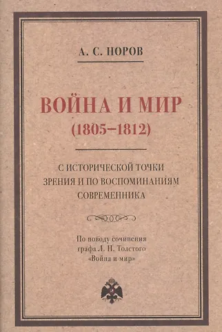 Роман Л. Н. Толстого «Война и мир» по праву относится к числу главных произведений русской классики. Но много ли исторической правды может найти в нем пытливый читатель, интересующийся не только литературой, но и историей России? Этим вопросом задается А. С. Норов – государственный деятель и писатель, министр народного просвещения в 1853–1858 годах. А. С. Норов не понаслышке знал о событиях Отечественной войны 1812 года: в чине прапорщика он принимал участие в боевых действиях, во время Бородинского сражения командовал взводом и получил тяжелое ранение. В своем труде автор развенчивает сложившиеся мифы о кампании 1805–1807 годов и об Отечественной войне 1812 года, подробно рассматривая эпизо