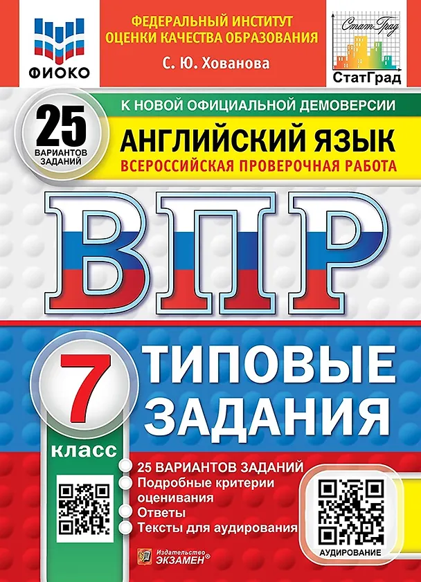 ВПР. Английский язык. 7 класс. Типовые задания. 25 вариантов заданий. Подробные критерии оценивания. Ответы. Тексты для аудирования