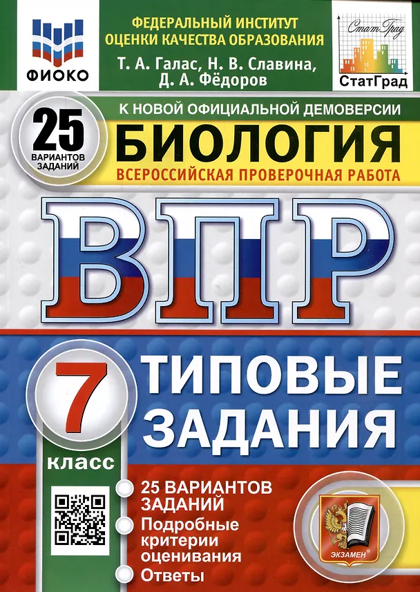 Данное пособие полностью соответствует федеральному государственному образовательному стандарту. Книга содержит 25 вариантов типовых заданий Всероссийской проверочной работы (ВПР) по биологии для учащихся 7-х классов. Сборник предназначен учащимся 7-х классов, учителям и методистам, использующим типовые задания для подготовки к Всероссийской проверочной работе по биологии.