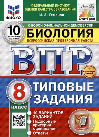Данное пособие полностью соответствует федеральному государственному образовательному стандарту. Книга содержит 10 вариантов типовых заданий Всероссийской проверочной работы (ВПР) по биологии для учащихся 8-х классов. Сборник предназначен учащимся 8-х классов, учителям и методистам, использующим типовые задания для подготовки к Всероссийской проверочной работе по биологии.