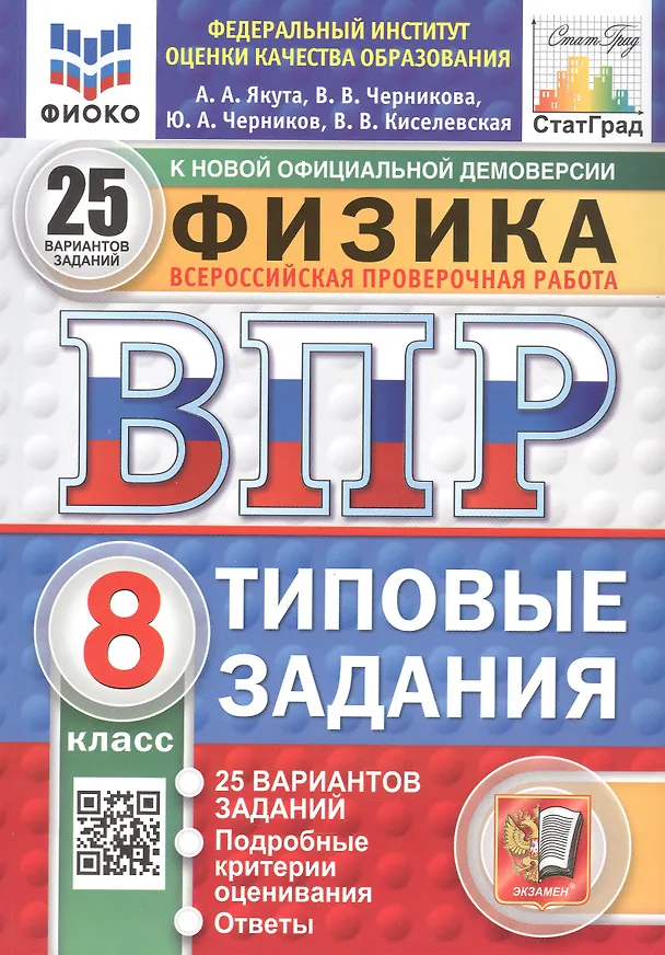 Данное пособие полностью соответствует федеральному государственному образовательному стандарту (второго поколения). Книга содержит 25 вариантов типовых заданий Всероссийской проверочной работы (ВПР) по физике для учащихся 8-х классов. Сборник предназначен учащимся 8-х классов, учителям и методистам, использующим типовые задания для подготовки к Всероссийской проверочной работе по физике.