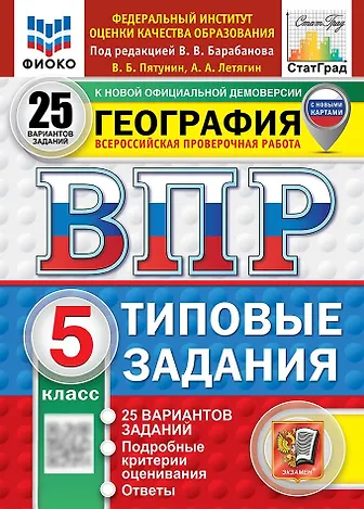 Всероссийская проверочная работа. География. 5 класс. 25 вариантов. Типовые задания. 25 вариантов заданий. Подробные критерии оценивания. Ответы. ФГОС НОВЫЙ