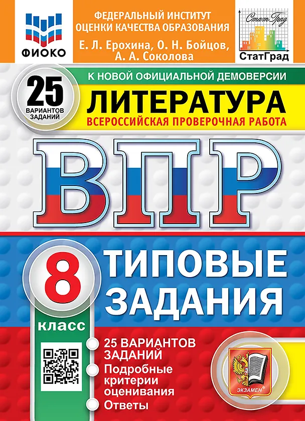 Всероссийская проверочная работа. Литература: 8 класс: 25 вариантов. Типовые задания. ФГОС НОВЫЙ