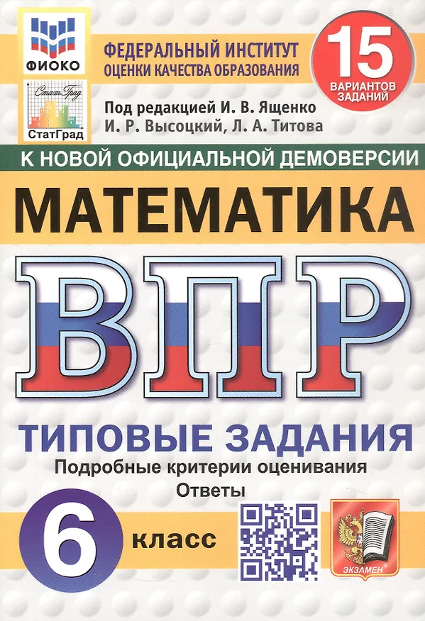 Всероссийская проверочная работа. Математика. 6 класс. Типовые задания. 15 вариантов заданий. ФГОС Новый