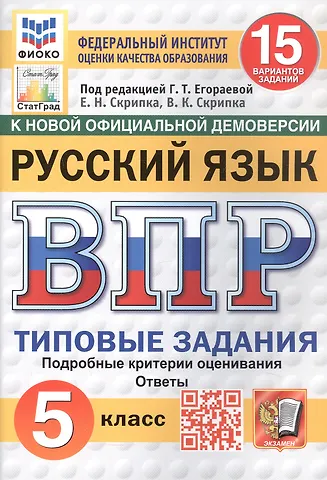 Всероссийская проверочная работа. Русский язык. 5 класс. Типовые задания. 15 вариантов заданий. ФГОС Новый