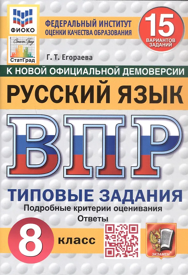 Всероссийская проверочная работа. Русский язык. 8 класс. Типовые задания. 15 вариантов заданий. ФГОС Новый