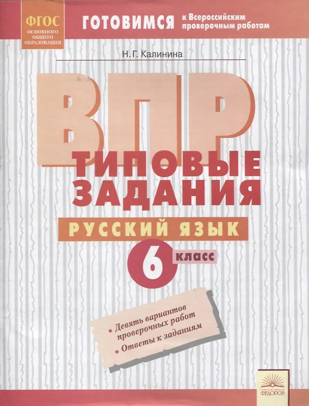 Назначение ВПР по русскому языку — мониторинг уровня подготовки учащихся 6 классов в соответствии с требованиями ФГОС основного общего образования. Данное пособие содержит 9 вариантов проверочных работ, соответствующих по структуре и типу заданий демоверсии Всероссийской проверочной работы по русскому языку за курс 6 класса основной школы, а также развернутые ответы ко всем вариантам.